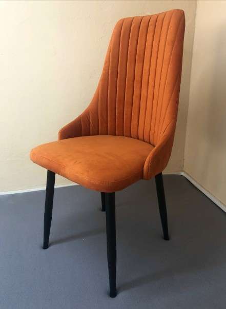 Обивка изготовлена из однотонного мягкого велюра, который смотрится очень благородно благодаря своему блеску. Декоративная отстрочка добавляет спинке выразительный рельеф.